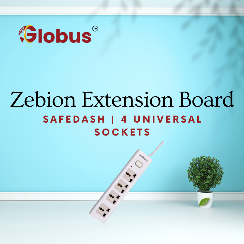 Zebion Safedash Extension Board with 4 Universal Sockets, 5-Meter Cord, Surge Protection (White)