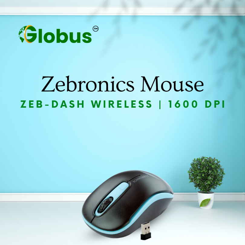 Zebronics ZEB-DASH Wireless Optical Mouse – 2.4GHz, 1600 DPI, 4 Buttons, Nano Receiver (Black)