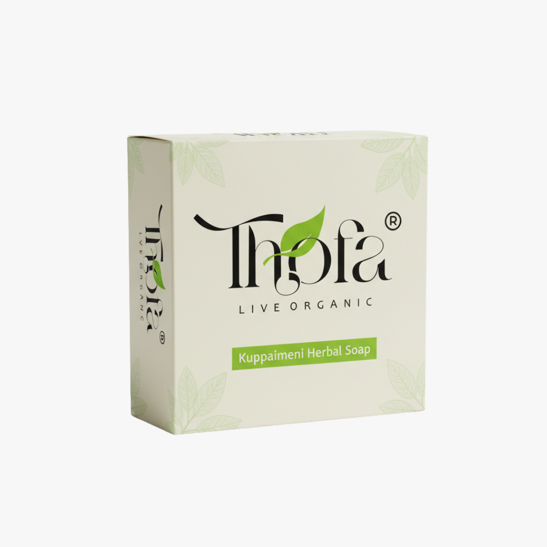 Kuppaimeni Soap Bath Soap is thoughtfully crafted to support a clean and refreshing daily bathing routine. Enriched with kuppaimeni powder and complemented by a gentle frangipani fragrance, this soap offers a pleasant bathing experience with a natural, herbal touch. Its balanced formulation makes it suitable for regular use, helping maintain freshness and skin comfort after every wash.