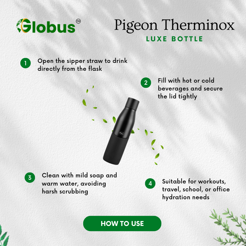 Whether you’re heading to the office, gym, or embarking on a travel adventure, the Pigeon Luxe Therminox Sipper Flask ensures you have access to your preferred beverage at the perfect temperature. Its durable construction and thoughtful design make it a reliable companion for daily use.