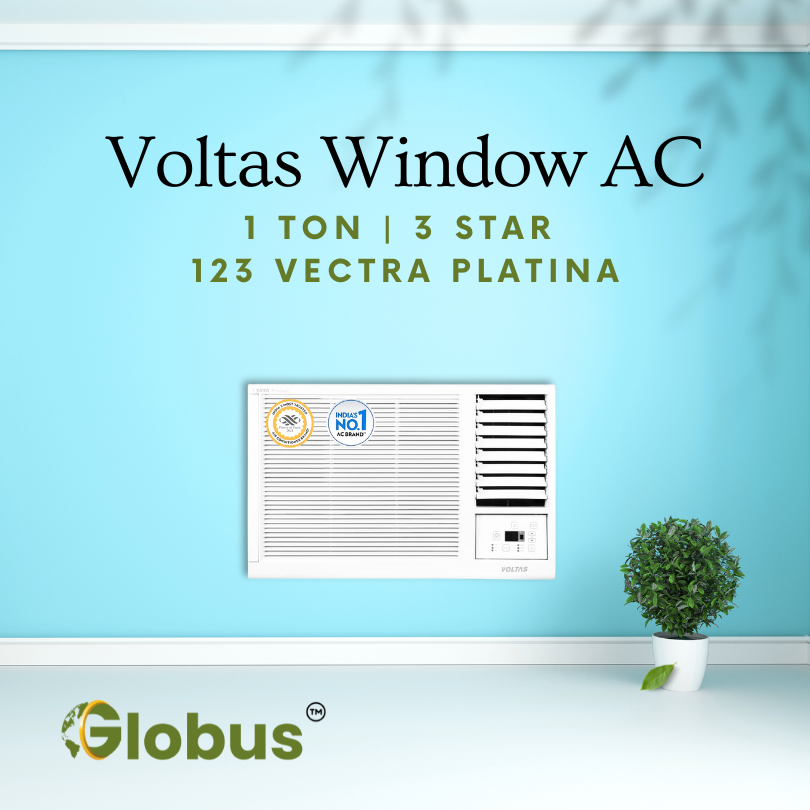 The Voltas 123 Vectra Platina 1 Ton 3 Star Fixed Speed Window AC offers reliable and energy-efficient cooling for small to medium-sized rooms up to 120 sq. ft. Its 3 Star BEE Rating ensures optimal energy consumption, while the high ambient cooling capability allows it to operate effectively even at temperatures up to 48°C.
